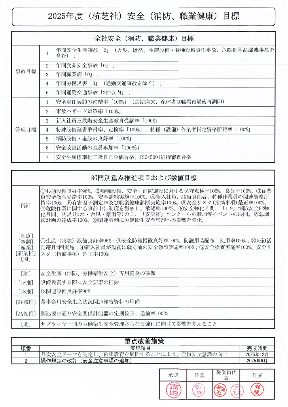 職業健康目標
