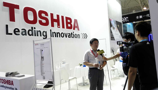 展會期間,東芝吸引了愛奇藝,CCTV看中國,凈界雜志等多家線上線下媒體的到場采訪。新事業(yè)推進(jìn)部王兵部長也向媒體全方位的展示了光蓓凈光觸媒產(chǎn)品和電解水生成器等各種產(chǎn)品。